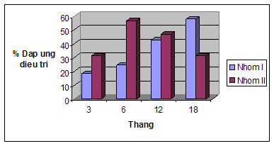 Ðáp ứng điều trị ở nhóm II nhanh chóng nhưng tái phát về sau, nhóm I chậm nhưng tích lũy qua thời gian ,cuối cùng tỉ lệ thành công cao hơn nhóm I có ý nghĩa , chúng ta thấy qua biểu đồ 1 :